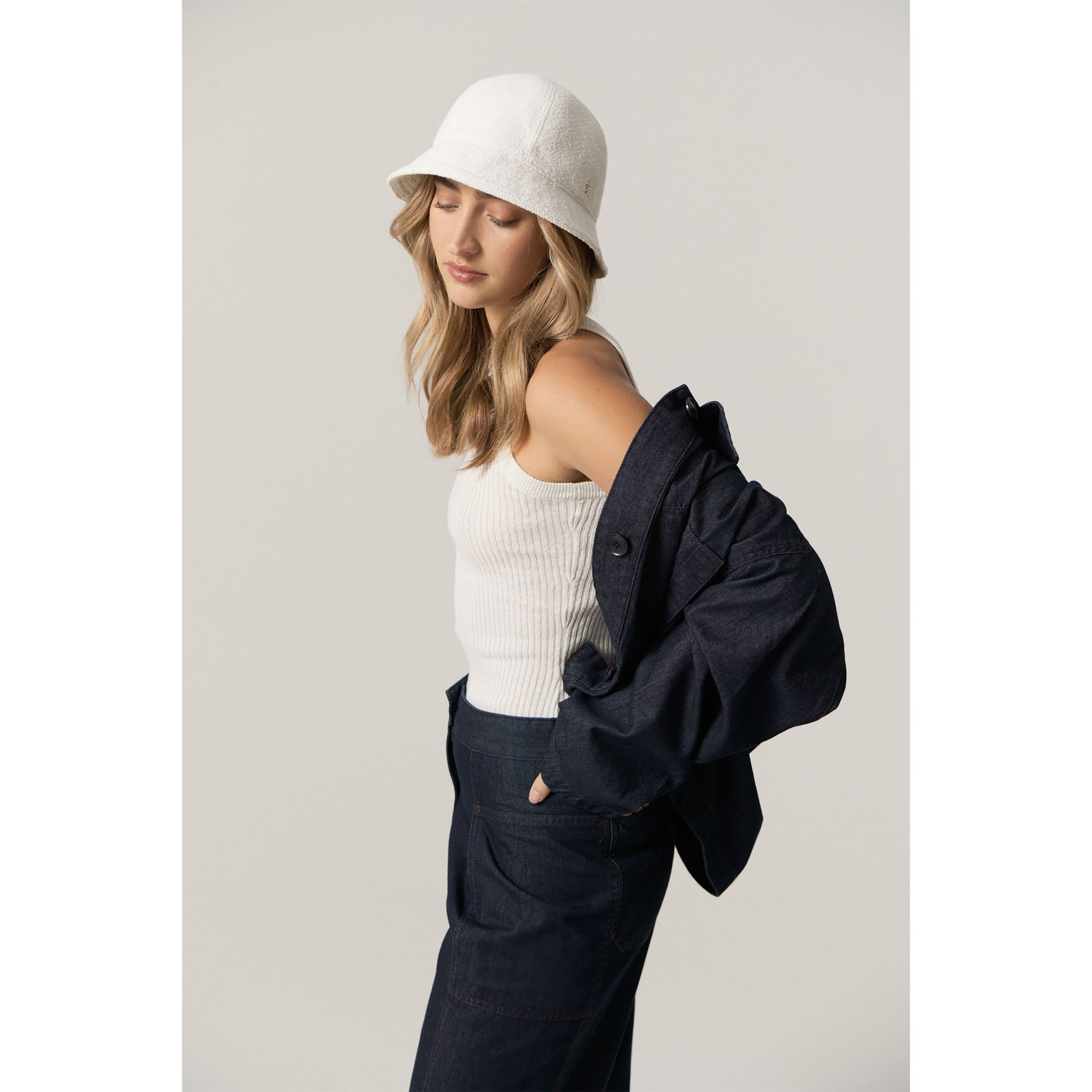 Meet Carmen, our classic cloche silhouette for Summer 24. Crafted from lightweight, conscious, boucle yarn Carmen exudes sophisticated elegance. The 6-panel round crown and 6cm brim make it a go-to accessory for any occasion and a must-have for those seeking classic style with a sustainable touch.Classic 6 Panel ClocheItalian Boucle Fabric with a blend of Recycled Cotton & Recycled Polyester 5.5cm BrimTopstitched Brim with Self Fabric Piped Brim EdgeSize Adjustable Innerband for FitLightweight Cotton Fitted Lining